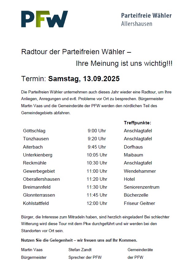 12.11.2025, 19:00 Uhr, Aufstellungsversammlung für die Kommunalwahl 2026 beim Fuchswirt in Allershausen